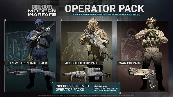 *Each Operator Pack includes a themed Operator skin, cosmetic weapon variant, and additional bonus content.**Call of Duty Points (CP) will be accessible in Call of Duty®: Modern Warfare® once CP are made available in game. Platform and region availability may vary and are subject to change.