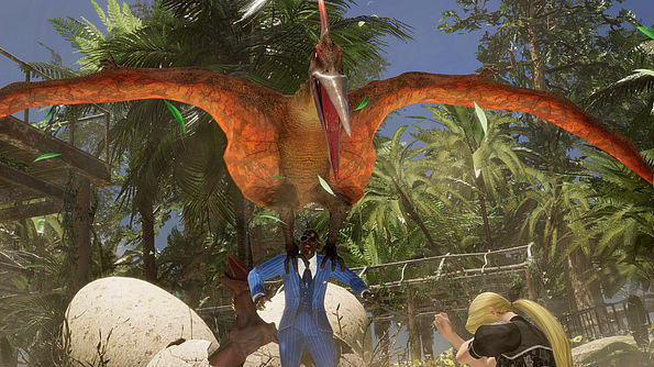 Neben den Fightern wurde auch die neue Arena Lost Paradise enthüllt. "The magnificent jungle is mixed with the decaying remains of man-made constructions, with some surprising secrets popping out of all corners. Collide with the extremely large eggs and you will not only disturb whatever’s inside, but also alert their mother – a giant Pteranodon who will swoop in for the attack. But that’s not the only danger lurking, as the fence separating the fighters from the jungle is sparked with electricity. Fall to the bottom level and a Tyrannosaurus awaits, ready to rip into anyone within biting distance."