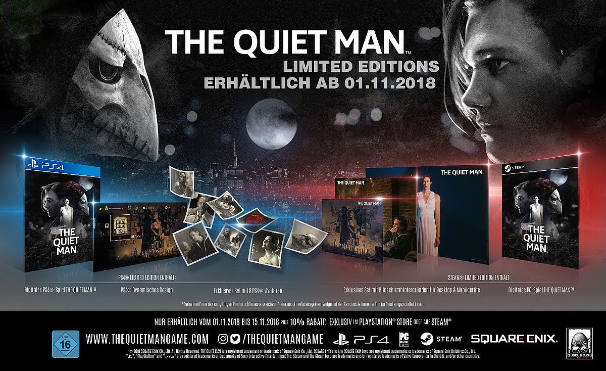 Square Enix hat das Release Datum zu The Quiet Man veröffentlicht. Am 01.11.2018 wird das Spiel in digitaler Form erscheinen. "The Quiet Man takes players beyond sound to deliver an immersive story-driven cinematic action experience, which can be completed in one sitting. In a story that unravels across a single night, players take the role of deaf protagonist Dane as he fights his way through a “soundless” world to discover the motives behind the kidnapping of songstress Lala by a mysterious masked man.", heißt es in der offiziellen Verkündung.