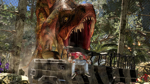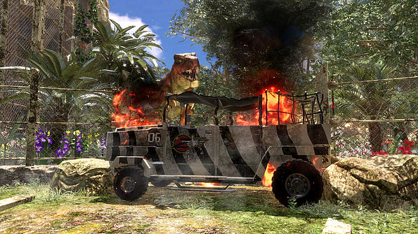 Neben den Fightern wurde auch die neue Arena Lost Paradise enthüllt. "The magnificent jungle is mixed with the decaying remains of man-made constructions, with some surprising secrets popping out of all corners. Collide with the extremely large eggs and you will not only disturb whatever’s inside, but also alert their mother – a giant Pteranodon who will swoop in for the attack. But that’s not the only danger lurking, as the fence separating the fighters from the jungle is sparked with electricity. Fall to the bottom level and a Tyrannosaurus awaits, ready to rip into anyone within biting distance."