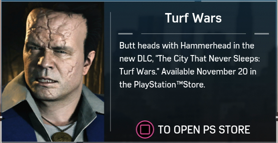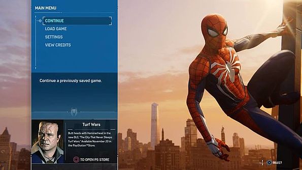 Das In-Game Menü in Marvel's Spider-Man hat anscheinend das Datum des kommenden DLCs "Turf Wars" bestätigt. Das gezeigte Bild beschreibt das kommende DLC folgendermaßen: "Butt heads with Hammerhead in the new DLC, 'The City That Never Sleeps: Turf Wars.' Available Nov. 20 in the PlayStation Store".