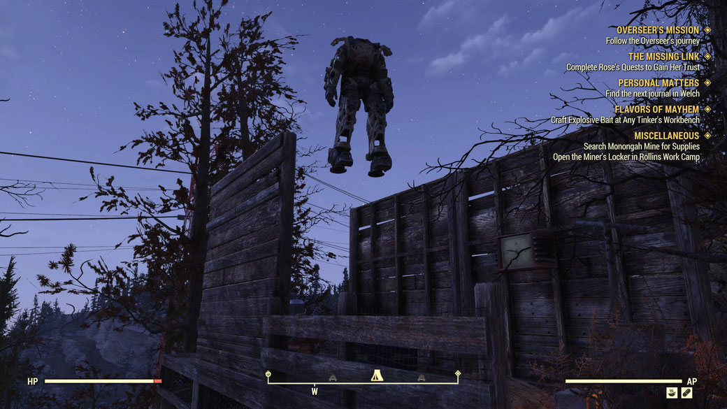 Motiviert und voller Vorfreude bin ich meinen Weg in die Wasteland von West Virginia weitergegangen. Dabei hatte ich leider die B.E.T.A. am Ende einer verbuggten Mission beendet. Mit der Hoffnung, dass ich diese nun weiterspielen kann– in der Annahme das das behoben wurde – war leider nicht so, sodass ich dann doch zu einem anderen Ort gereist bin, da die Sidemission weiterhin verbuggt war. Egal, ist ja nur eine Sidemission. Also reiste ich in mein C.A.M.P. um mir von dort aus die nächste Mission herauszusuchen.